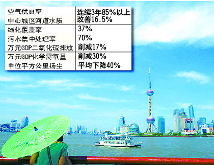 在第二轮环保三年行动计划中,上海按照“治本治源”原则,着力完善本市环境基础设施建设,减轻产业发展对能源消耗和环境的压力,使上海的GDP越来越“轻”。全市新增污水处理能力349万立方米/日,城市污水集中处理率达到70%,中心城区新增生活垃圾处理能力5900吨/日。三年来,上海通过大力推进污水截污纳管,市区燃煤锅炉清洁能源替代,扬尘和机动车污染治理,农业面源污染控制等措施,使全市污染排放总量逐年下降。据统计,与三年前相比,上海万元GDP二氧化硫排放量削减了17%,万元GDP化学需氧量削减了30%。全市单位平方公里扬尘平均下降了40%。