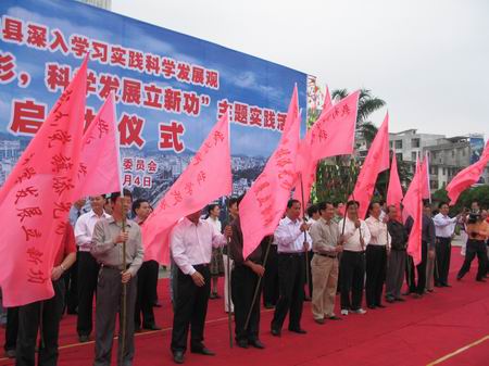 据了解,灵山县在学习实践科学发展观活动中,紧紧围绕“掌握科学发展基本功,创建西部小康示范县”这个主题,高标准启动、高质效运行,以实施“亿元企业带动工程、惠民便民工程、能力提升工程”为载体,抓住关键环节,突出活动特点,积极开展“我为党旗添光彩,科学发展立新功”主题实践活动,力求通过活动着力转变不适应、不符合科学发展观的思想观念,解决影响和制约科学发展的突出问题,解决人民群众最关心、最直接、最现实的利益问题,推动全县经济社会又好又快发展。