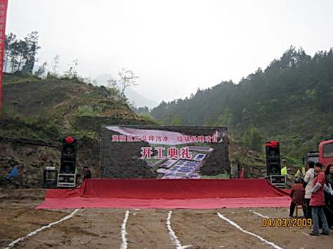 (水业中国网上海工作站4月10日讯)由天津市市政工程设计研究院给排水分院设计的三峡库区三斗坪镇污水·垃圾项目开工仪式,2009年4月3日上午在三峡库区长江右岸隆重举行。湖北省宜昌市、夷陵区的相关领导和建设单位、参建单位的代表参加了开工仪式。在代表参建单位发言时,我院表达了天津院热情服务三峡库区环境治理事业的真诚心愿。