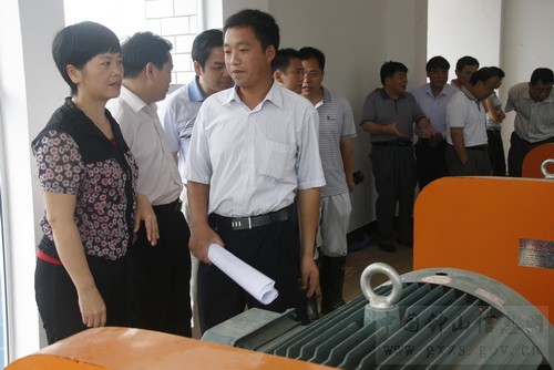 图为:钟山县人民政府县长黄毅群等领导在CASS生物处理池边上检查。