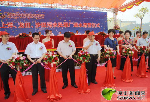 图为:深圳市委常委、常务副市长吕锐锋为3个污水处理厂通水剪彩
