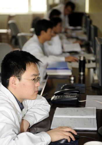 4月8日,工作人员在监控室内监测环境数据。 新华社记者 朱峥 摄