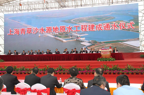 (水业中国网上海工作站6月21日讯)上海市青草沙水源地原水工程建成通水仪式于6月8日上午在长兴岛隆重举行。中共中央政治局委员、上海市委书记俞正声出席并启动通水装置,市委副书记、市长韩正出席并致辞。市领导冯国勤、杨雄等出席,水利部副部长胡四一,住房建设部副部长陈大卫,环保部总工程师万本太分别致辞,副市长沈骏主持通水仪式。