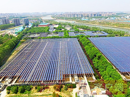 如果你在空中俯瞰污水处理厂,会看到大大小小的水池等建筑物。专业人士会告诉你,污水就是在这些池子里流动、净化、消毒。从去年开始,郑州部分污水处理厂悄然变身,陆续披上了光伏“外衣”。其中,中原环保郑州市马头岗污水处理厂夺得了一顶全国桂冠——单体最大“水务+光伏”电站。