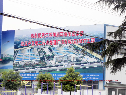 图为:2011年9月18日拍摄的江苏神洲环境工程有限公司外景广告牌。(陈震宇摄影)