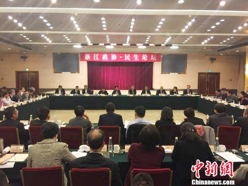 图为:浙江省政协十一届五次会议在会议期间举办第30次“浙江政协·民生论坛”。