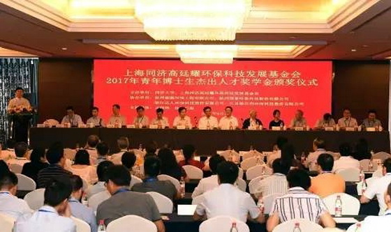 (水业中国网上海工作站10月6日讯)2017年9月2日,以同济大学和原同济大学校长、知名环境工程专家高廷耀教授名字命名,旨在推动环保教育事业发展的沪上首家非营利性民间环保基金会——“上海同济高廷耀环保科技发展基金会”,在杭州颁发“2017年青年博士生杰出人才奖学金”,来自同济大学、清华大学、上海交通大学、复旦大学、浙江大学、南京大学等全国12所高校的20名在读全日制青年博士生获奖,每人获3万元奖学金。