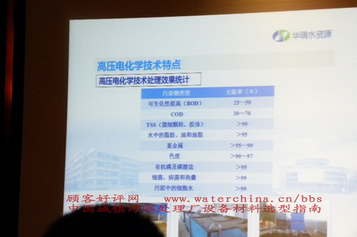 (水业中国网上海工作站12月15日讯)2017年12月14日,由谷腾环保网主办的“第八届高难度工业污水处理技术研讨会”在北京中航泊悦家酒店召开,其中北京华瑞斯水资源科技有限公司冀亚利总工程师的《高压电化学技术在工业废水处理领域的工程应用》主题演讲获得众多到会代表们的好评。笔者作为在中国城镇污水处理厂拟在建领域有着敏锐洞察力的多年资讯收集和市场分析领域从业者,十分肯定北京华瑞斯的电絮凝技术工艺包及装置包将在明年开始的太湖流域氮磷指标提标改造工程及浙江绍兴和杭州萧山地区污水处理厂提标改造和扩建工程中得到很好的应用。