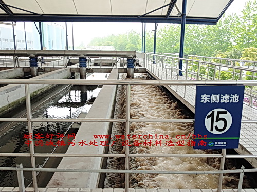 图为:“19016-浙江省杭州市七格污水处理厂三期提标改造工程(60万吨/天)”选用的美国STS的反硝化深床滤池正在运行中。