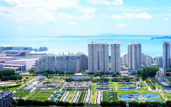 图为:福建省厦门市翔安污水处理厂与周边环境融为一体。