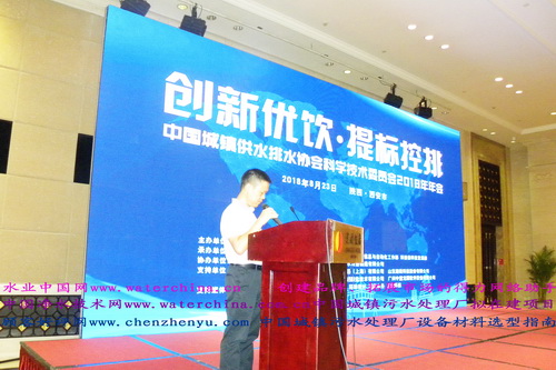 图为:广州市自来水公司袁永钦总工程师主持中国水协科技委2018年年会上午的主题论坛。