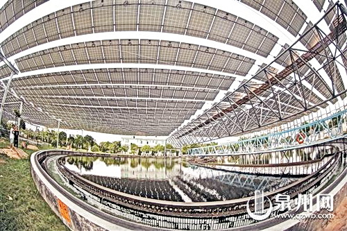 福建首个采用柔性支架技术污水处理厂分布式光伏项目并网成功(图) 此主题相关图片如下: (水业中国网上海工作站10月11日讯)由国家电投集团福建电力投资有限公司投资建设的石狮市中心区城市生活污水处理厂分布式光伏发电项目,于9月中旬并网成功,这是福建省首个采用柔性支架技术的污水处理厂分布式光伏项目。该项目总投资约2000万元,占地约4万平方米,装机总容量3兆瓦,设计年限25年,年均发电量可达312万千瓦时,75%发电量就地消纳,供给中心区污水处理厂,另外25%经中心区污水处理厂10KV母线上网,经济效益、社会效益和环境效益明显。 (来源:泉州晚报,作者:陈小阳、詹伟志摄影,上海供排水项目网戴晓红编辑,2018年10月11日) 相关链接:768-福建省泉州市石狮市中心城区污水处理厂尾水回用工程 http://www.waterchina.com.cn/bbs/viewarticle.asp?articleid=5550&classid=858 1536-福建省泉州市石狮市市区污水处理厂二期工程(扩建及再生水回用工程第一阶段工程) http://www.waterchina.com.cn/bbs/viewarticle.asp?classid=858&articleid=8665 3251-福建省泉州市石狮市市区污水处理厂三期工程(扩建及再生水回用工程第二阶段工程) http://www.waterchina.com.cn/bbs/viewarticle.asp?articleid=20736&classid=858 9062-福建省泉州市石狮市中心区城市污水处理厂一期提标改造及加盖除臭工程 http://www.waterchina.com.cn/bbs/viewarticle.asp?articleid=56259&classid=858 22318-福建省泉州市石狮市市区污水处理厂四期工程 http://www.waterchina.com.cn/bbs/viewarticle.asp?articleid=110521&classid=858 22940-福建省泉州市石狮市中心市区生活污水处理厂尾水利用冲刷内沟河工程 http://www.waterchina.com.cn/bbs/viewarticle.asp?articleid=112688&classid=858